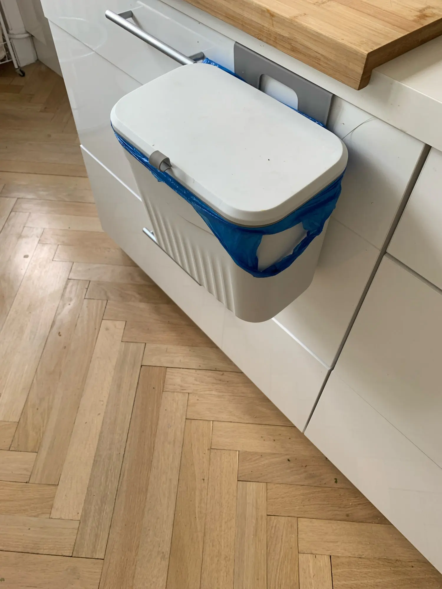Mais do que uma lixeira, este modelo suspenso foi projetado para integrar fluxo de trabalho e design na cozinha. Não é dobrável — é uma solução fixa/suspensa pensada para otimizar pontos de descarte durante o preparo de refeições, reduzir deslocamentos e manter a bancada limpa. Disponível em dois tamanhos para atender diferentes necessidades de espaço e volume.